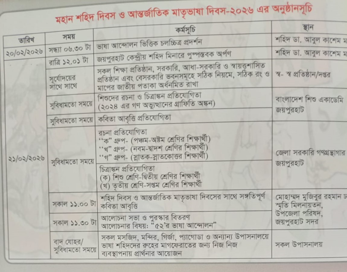 মহান শহিদ দিবস ও আন্তর্জাতিক মাতৃভাষা দিবস- ২০২৬ এর অনুষ্ঠানসূচি