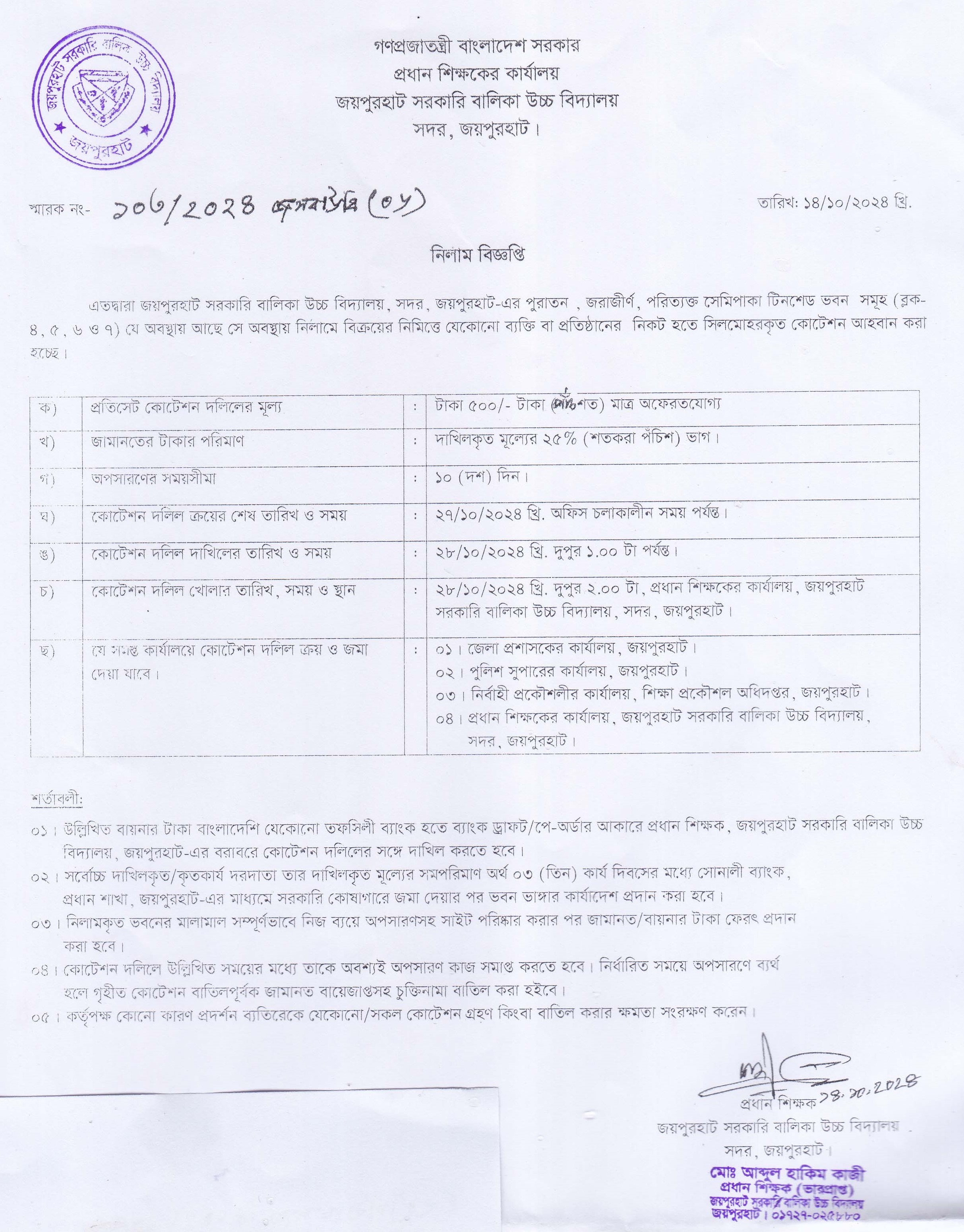 জয়পুরহাট সরকারি বালিকা উচ্চ বিদ্যালয়ের অফিসিয়াল ফেসবুক পেজ